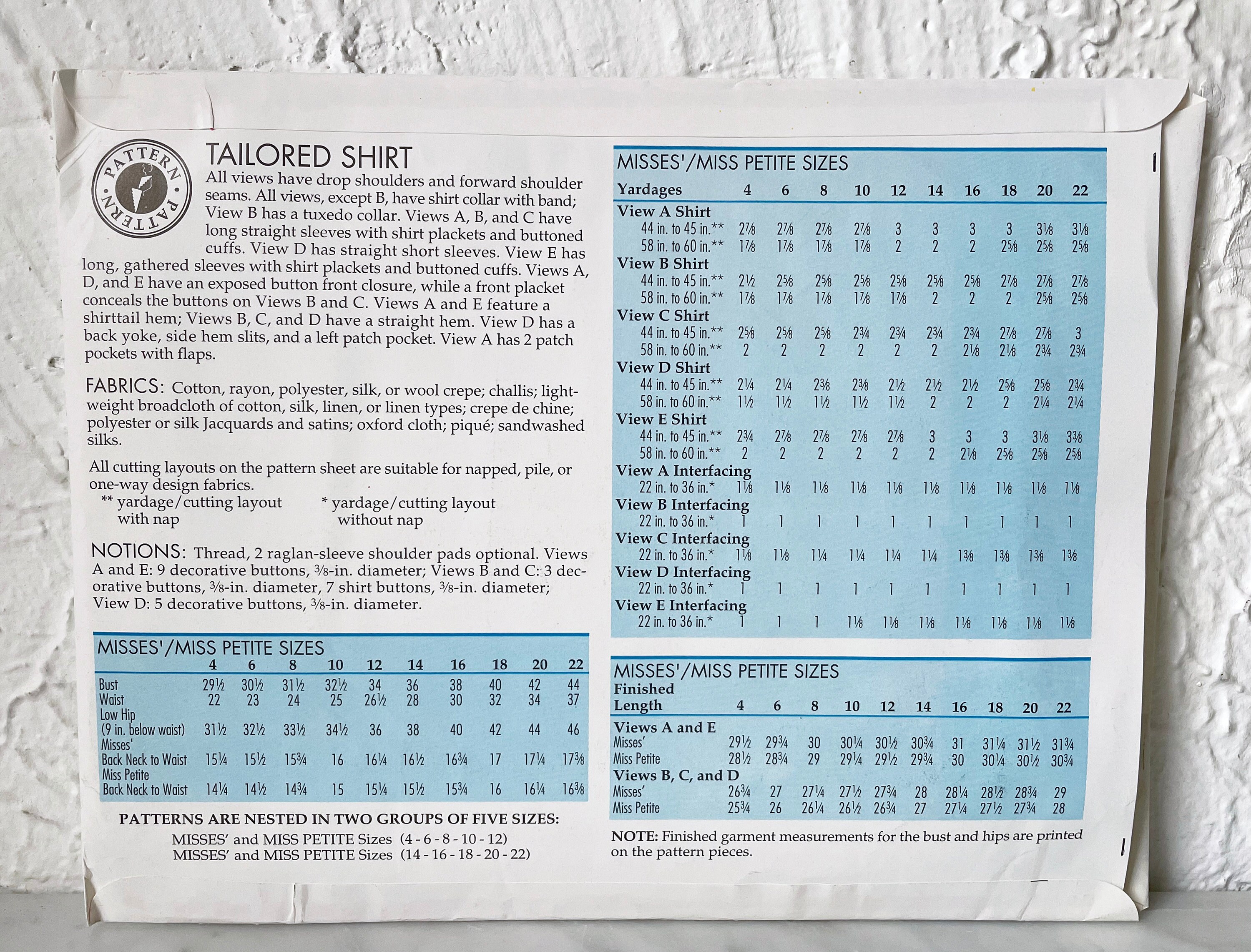 Sewing Step By Step Pattern Tailored Shirt Misses Sizes Etsy